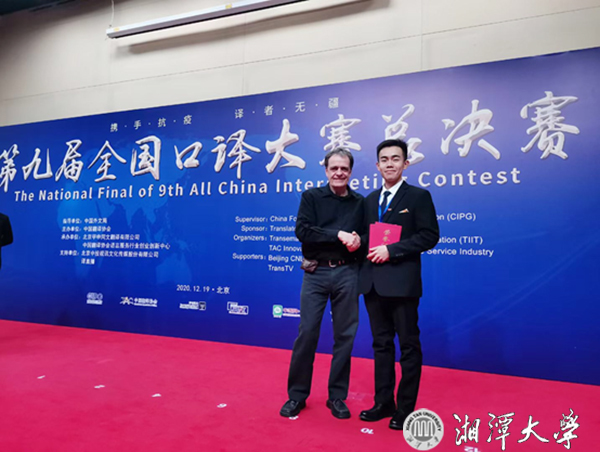12月19日,第九屆全國(guó)口譯大賽總決賽在北京舉行,經(jīng)過層層選拔和比拼,來(lái)自全國(guó)東南西北4大賽區(qū)、港澳臺(tái)和海外高級(jí)翻譯學(xué)院的60名選手,同臺(tái)競(jìng)技。我校外國(guó)語(yǔ)學(xué)院選手廖智超臺(tái)風(fēng)穩(wěn)健、傳譯完整準(zhǔn)確,征服了來(lái)自外交部、外文局和中國(guó)翻譯協(xié)會(huì)的各位中外專家和評(píng)委,獲得全國(guó)一等獎(jiǎng)(指導(dǎo)老師:侯晟)。